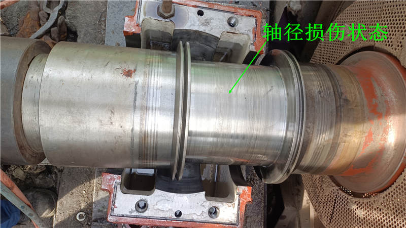 2021年3月16日至3月18日,大陸激光在首鋼遷鋼燒結(jié)廠現(xiàn)場,對耐熱風(fēng)機主軸徑進行了現(xiàn)場激光再制造修復(fù)。該風(fēng)機轉(zhuǎn)子在檢修中發(fā)現(xiàn)軸瓦嚴重磨損、拉傷,軸瓦部位有點狀研磨凹坑,傳動端主軸頸磨損嚴重,深度在0.5—1mm,損傷長度210mm,嚴重影響機組正常運行,需對軸頸進行激光修復(fù)。為盡快解決機組問題,大陸激光立刻組織相關(guān)人員及設(shè)備從鞍鋼、攀鋼、文豐鋼鐵等現(xiàn)場趕往遷鋼。